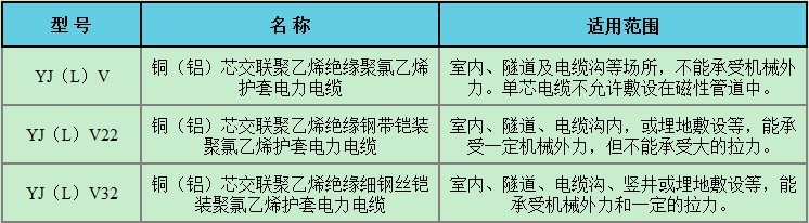 六、電纜的型號、名稱及使用范圍