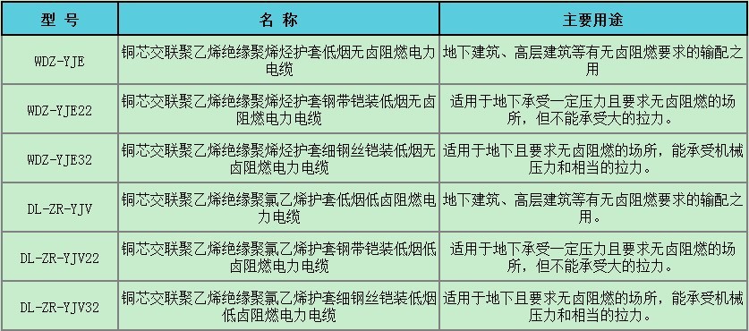 五、電纜的型號(hào)、名稱及主要用途