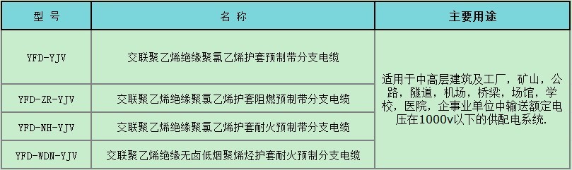 五、預(yù)制分支電纜的型號(hào)、名稱及主要用途